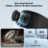 Our premium moisture-wicking fabric features breathable construction, ultra-thin speakers, and a flexible, adjustable fit that stays secure through any movement.